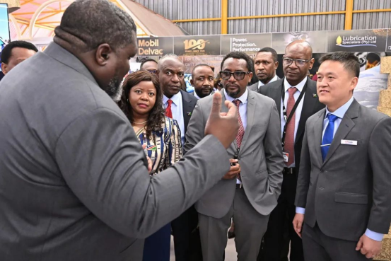 ▲納米比亞副總理兼工業(yè)化和礦業(yè)能源部部長納坦格·伊泰特、納米比亞國際關系部副部長珍尼莉·馬通杜等參觀斯科公司展臺